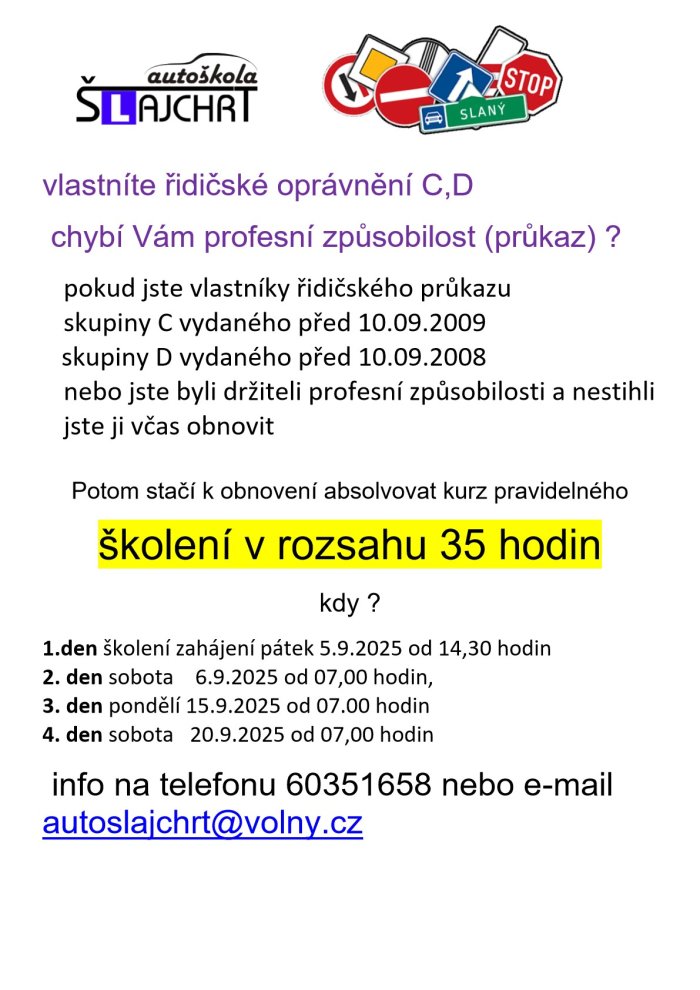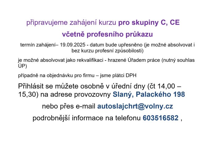 28.8.2025 - Zahájení kurzu pro sk. C a CE včetně profesního průkazu již v září